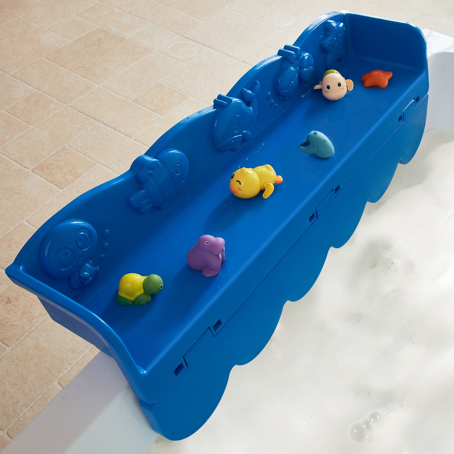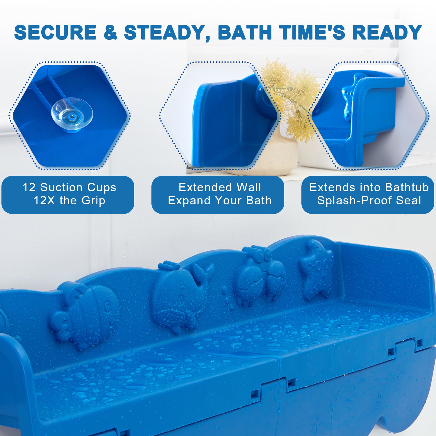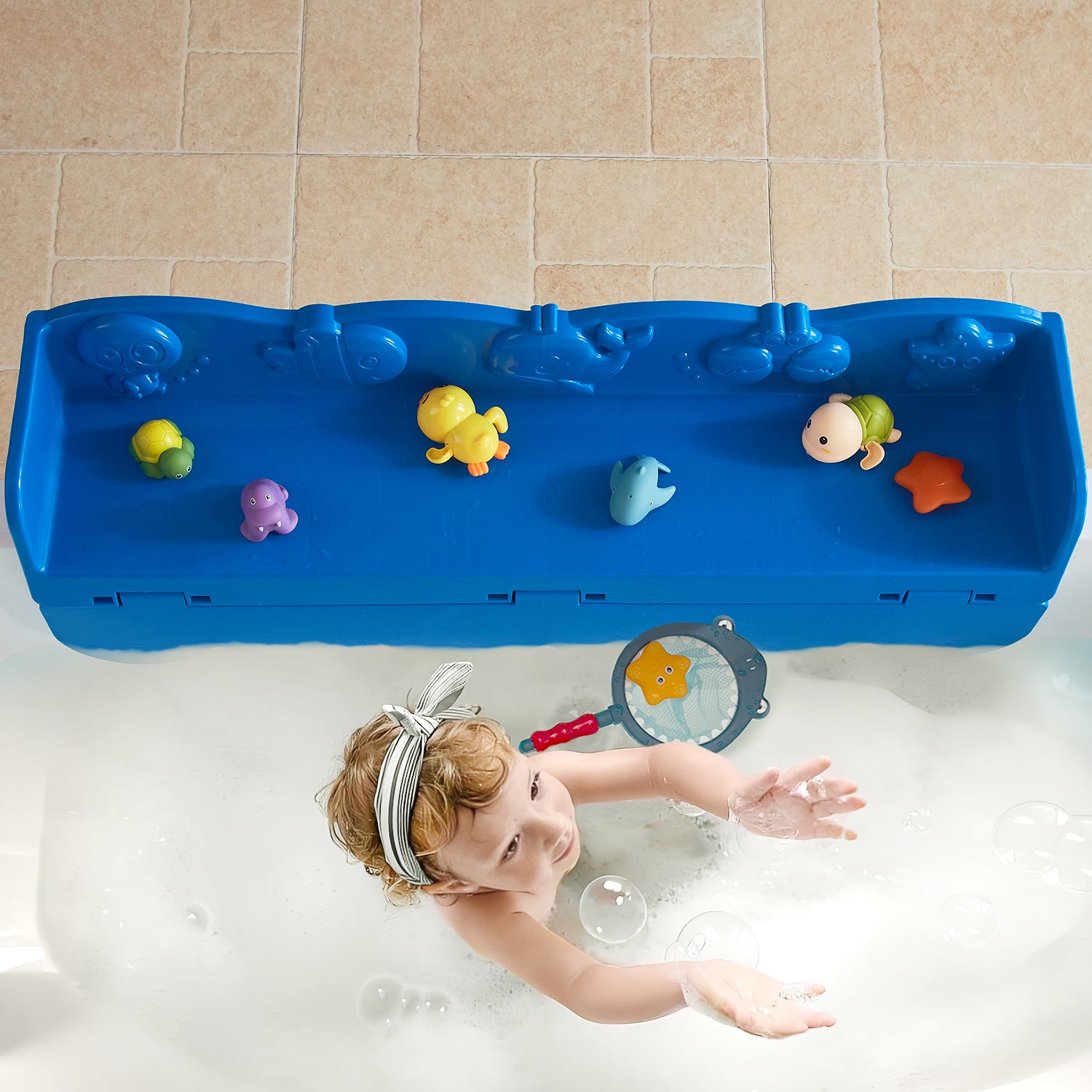 Ozean Tiere Badewanne Spritzschutz für Kinder, drehbare Design Badewanne Wanne Tablett, Wanne Regal und Organizer für Baby Bad Spielzeug, Bad Spielzeug Tolder für Kleinkinder Kinder Baby (Blau)