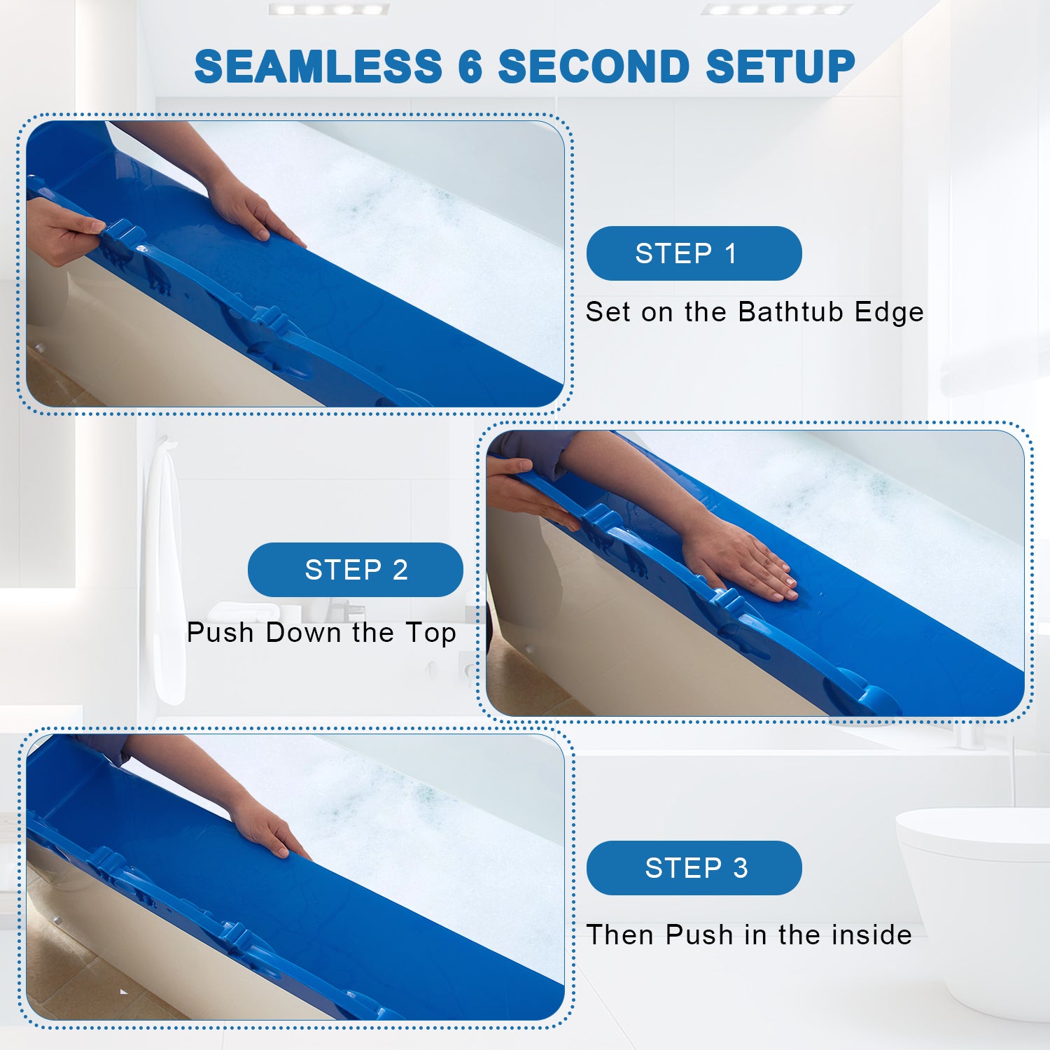 - Die über den Wannenrand hinausragende Länge von 3 Fuß bietet mehr Spielraum und nutzt den großzügigen Stauraum auf dem Tablett, um Spielzeug und andere wichtige Dinge in Reichweite zu halten, während gleichzeitig noch Platz zum Ein- und Aussteigen in die Wanne bleibt. Der Rand reicht bis in die Wanne hinein und hält das Wasser in der Wanne.