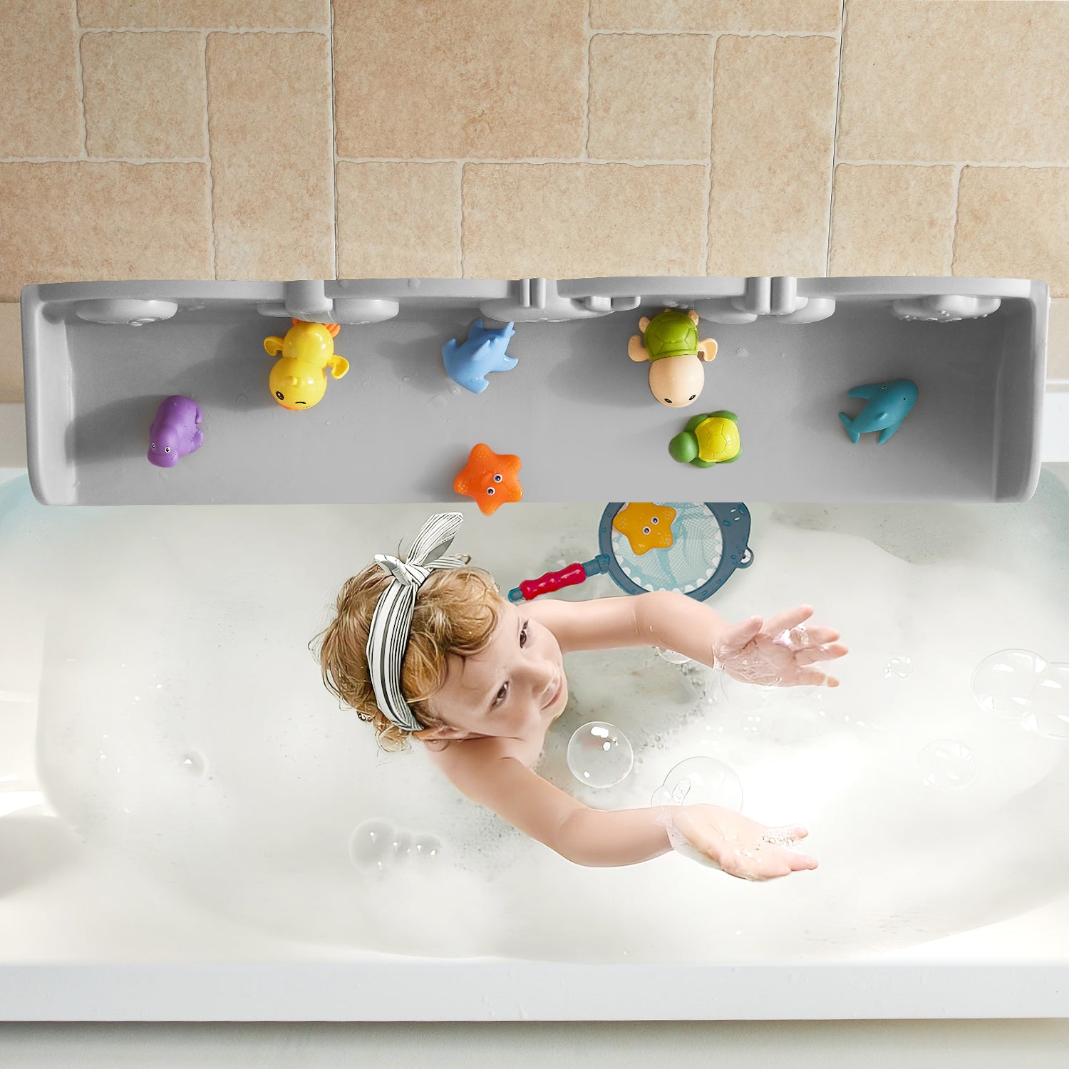 Ozean Tiere Badewanne Spritzschutz für Kinder, drehbare Design Badewanne Wanne Tablett, Wanne Regal und Organizer für Baby Bad Spielzeug, Bad Spielzeug Tolder für Kleinkinder Kinder Baby (Grau)