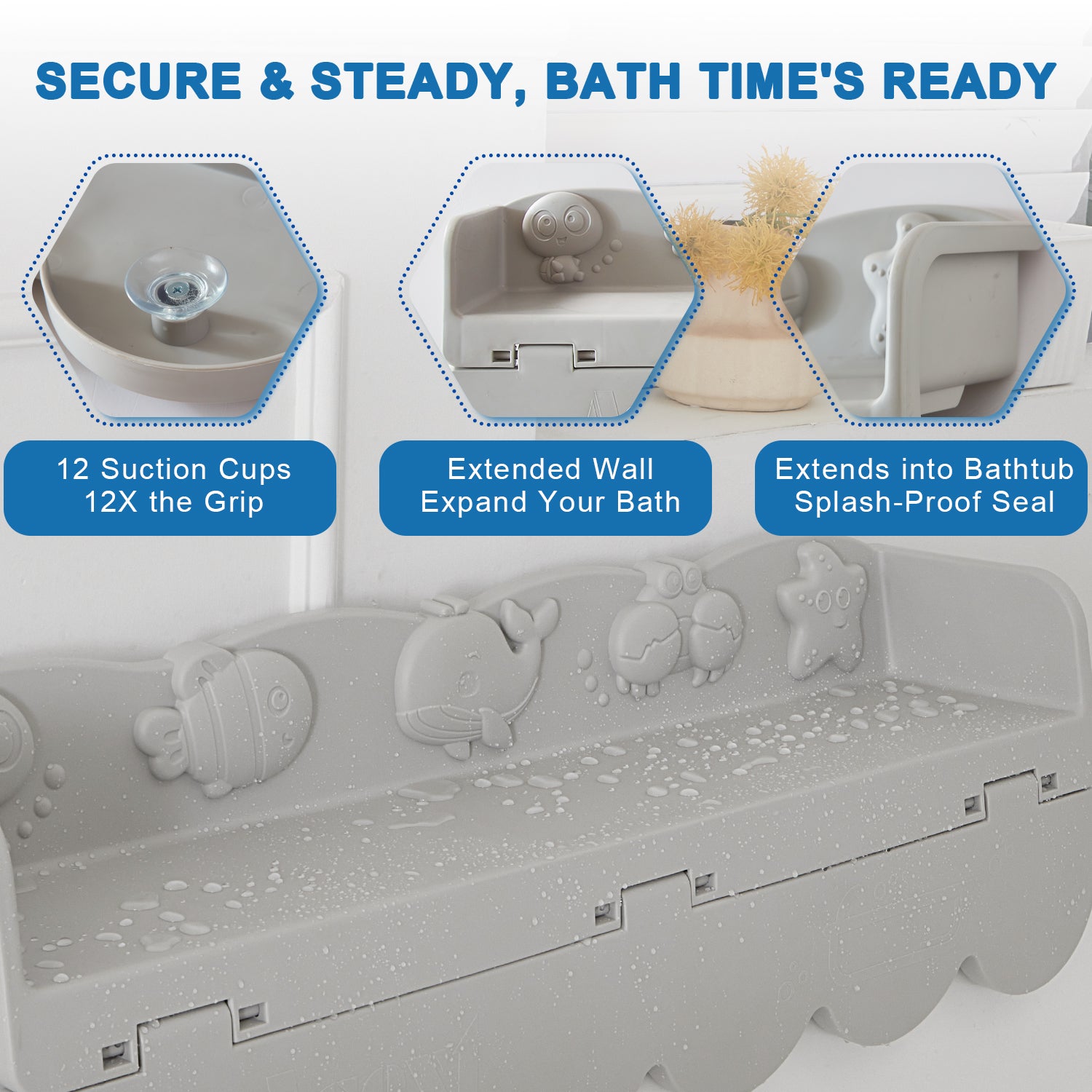 - Die hohe Wand am Rand des Spielbereichs wirkt als wasserdichte Barriere, die das Wasser effektiv in der Wanne hält, ein Auslaufen verhindert und das Badezimmer sauber und trocken hält