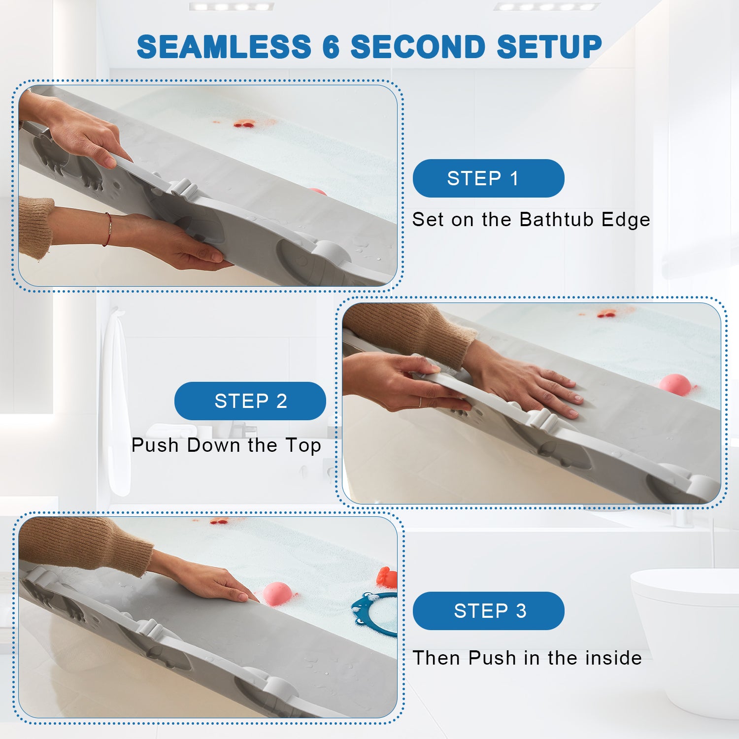 - Die über den Wannenrand hinausragende Länge von 3 Fuß bietet mehr Spielraum und nutzt den großzügigen Stauraum auf dem Tablett, um Spielzeug und andere wichtige Dinge in Reichweite zu halten, während gleichzeitig noch Platz zum Ein- und Aussteigen in die Wanne bleibt. Der Rand reicht bis in die Wanne hinein und hält das Wasser in der Wanne.