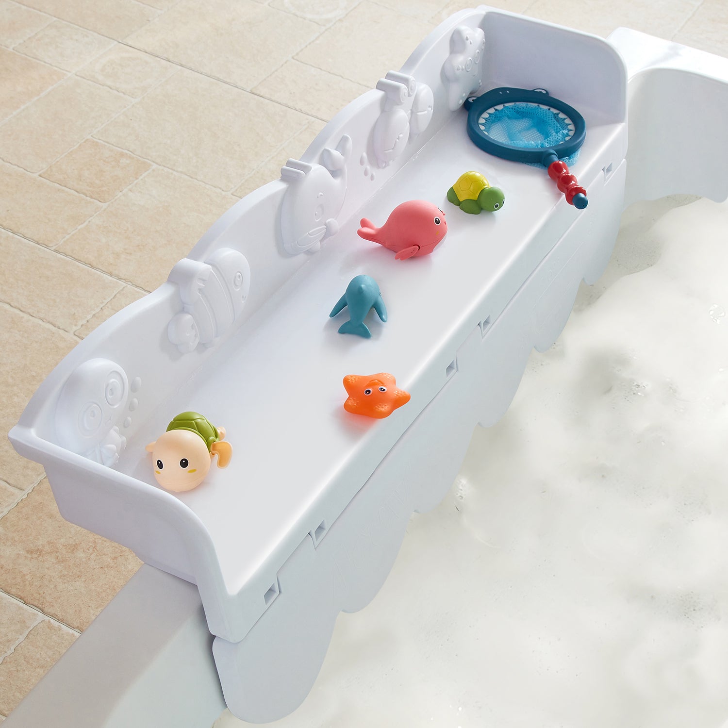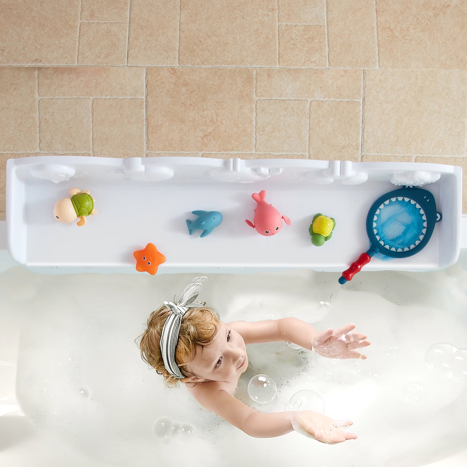 Ozean Tiere Badewanne Spritzschutz für Kinder, drehbare Design Badewanne Wanne Tablett, Wanne Regal und Organizer für Baby Bad Spielzeug, Bad Spielzeug Tolder für Kleinkinder Kinder Baby (Weiß)