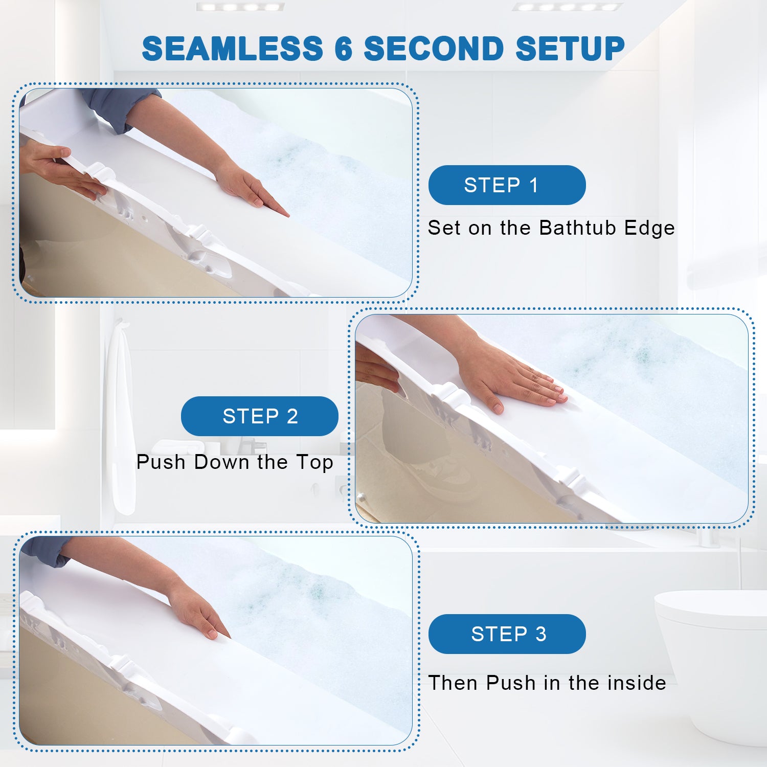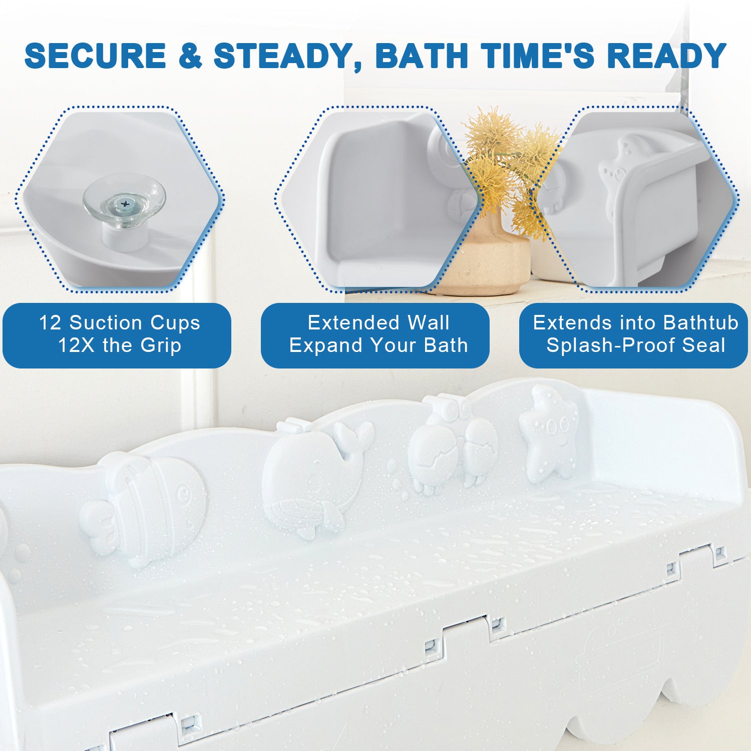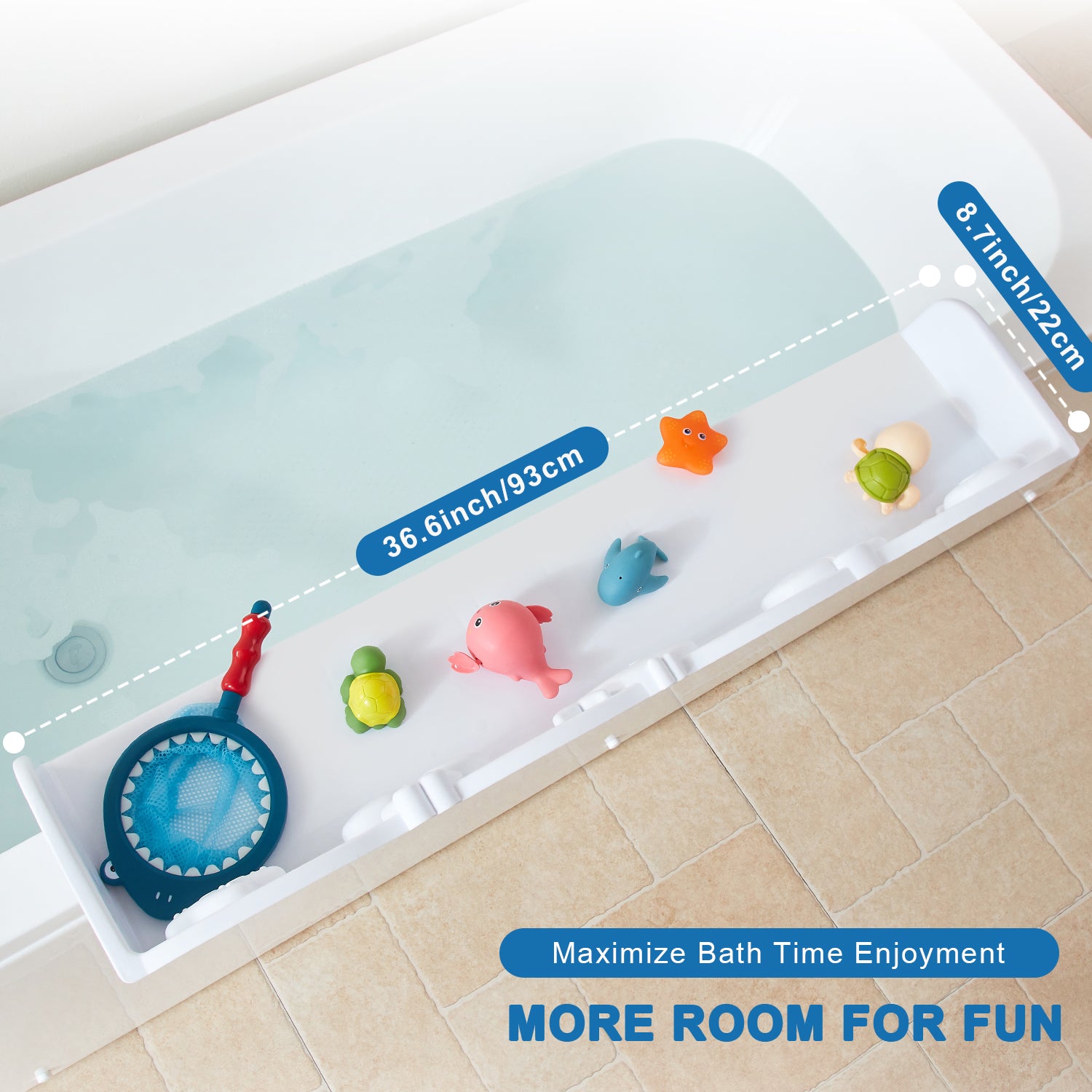 - Die über den Wannenrand hinausragende Länge von 3 Fuß bietet mehr Spielraum und nutzt den großzügigen Stauraum auf dem Tablett, um Spielzeug und andere wichtige Dinge in Reichweite zu halten, während gleichzeitig noch Platz zum Ein- und Aussteigen in die Wanne bleibt. Der Rand reicht bis in die Wanne hinein und hält das Wasser in der Wanne.
