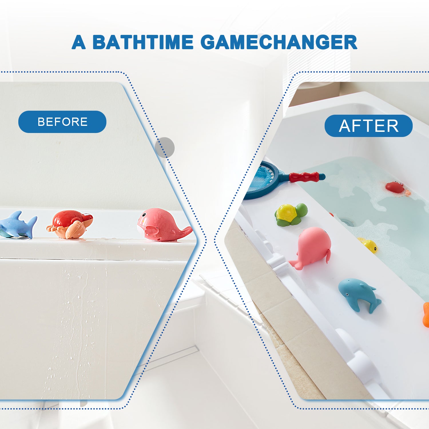 - Die hohe Wand am Rand des Spielbereichs wirkt als wasserdichte Barriere, die das Wasser effektiv in der Wanne hält, ein Auslaufen verhindert und das Badezimmer sauber und trocken hält